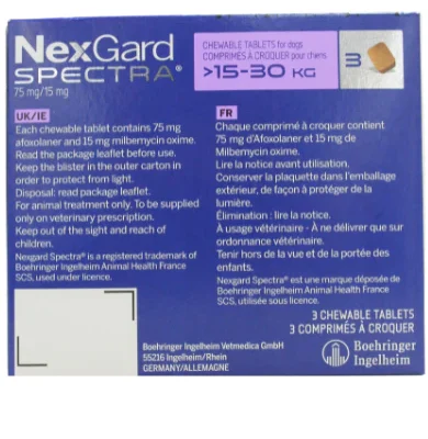 NexGard Spectra 75 mg/30 mg Chewable Tablets for Dogs (15-30 kg)